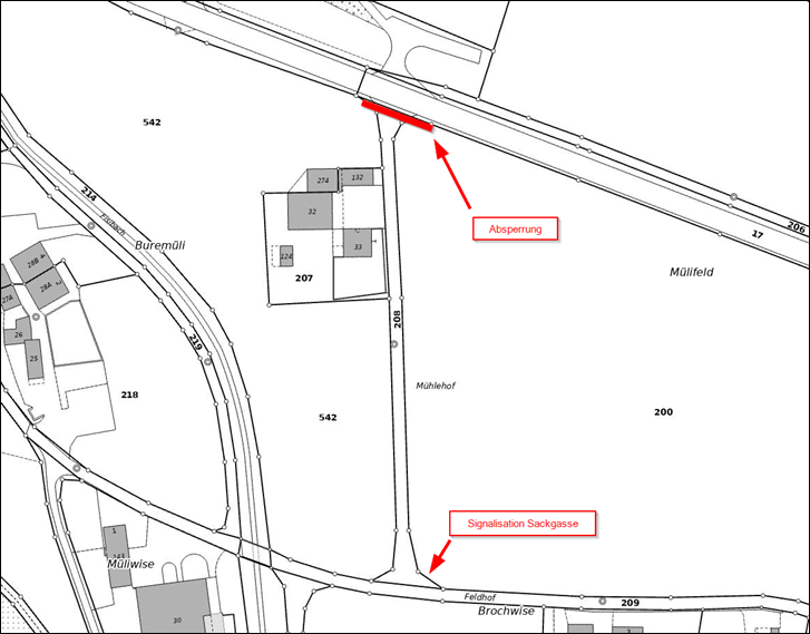 Sperrung Zu- und Wegfahrt vom Mühlehof in die Hauptstrasse